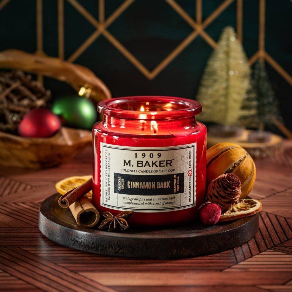 Świece Colonial Candle M. Baker to świece w dużym, masywnym szkle z wieczkiem. Zawierają olejki eteryczne pozyskiwane z naturalnych roślin aby zapewnić najbardziej autentyczne i aromatyczne zapachy, jak to tylko możliwe. Świece M. Baker z pojedynczym bawełnianym knotem są doskonałym dodatkiem do wnętrz w Twoim domu.