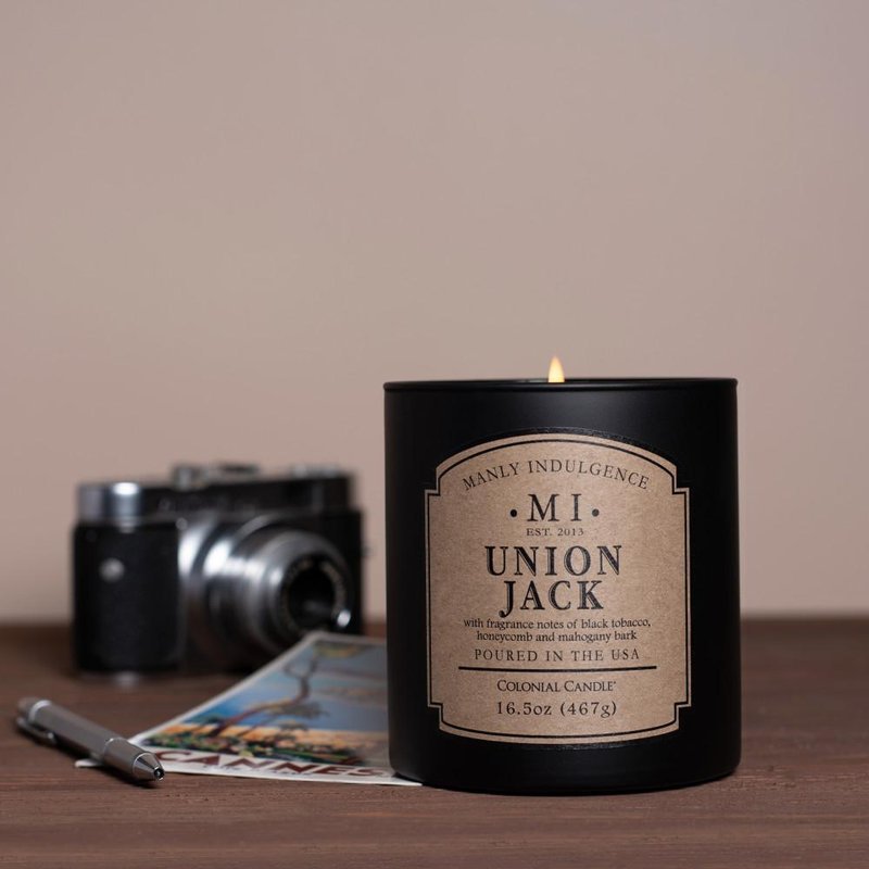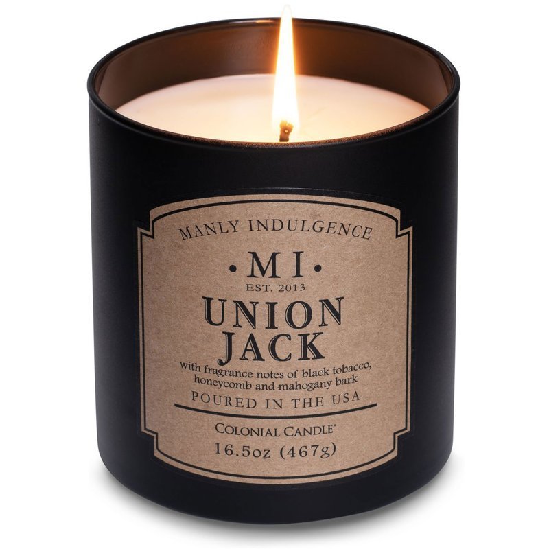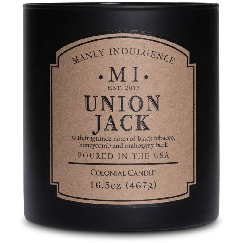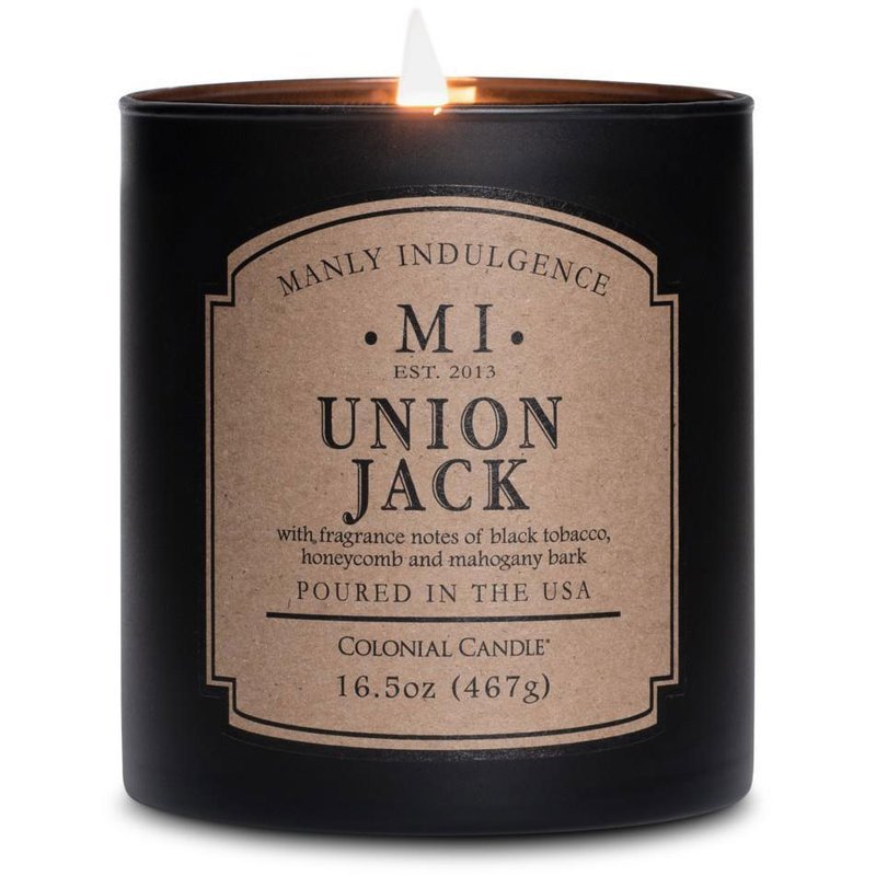 Sojowa świeca zapachowa w czarnym szkle Colonial Candle Manly Indulgence 16.5 oz 467 g – Union Jack